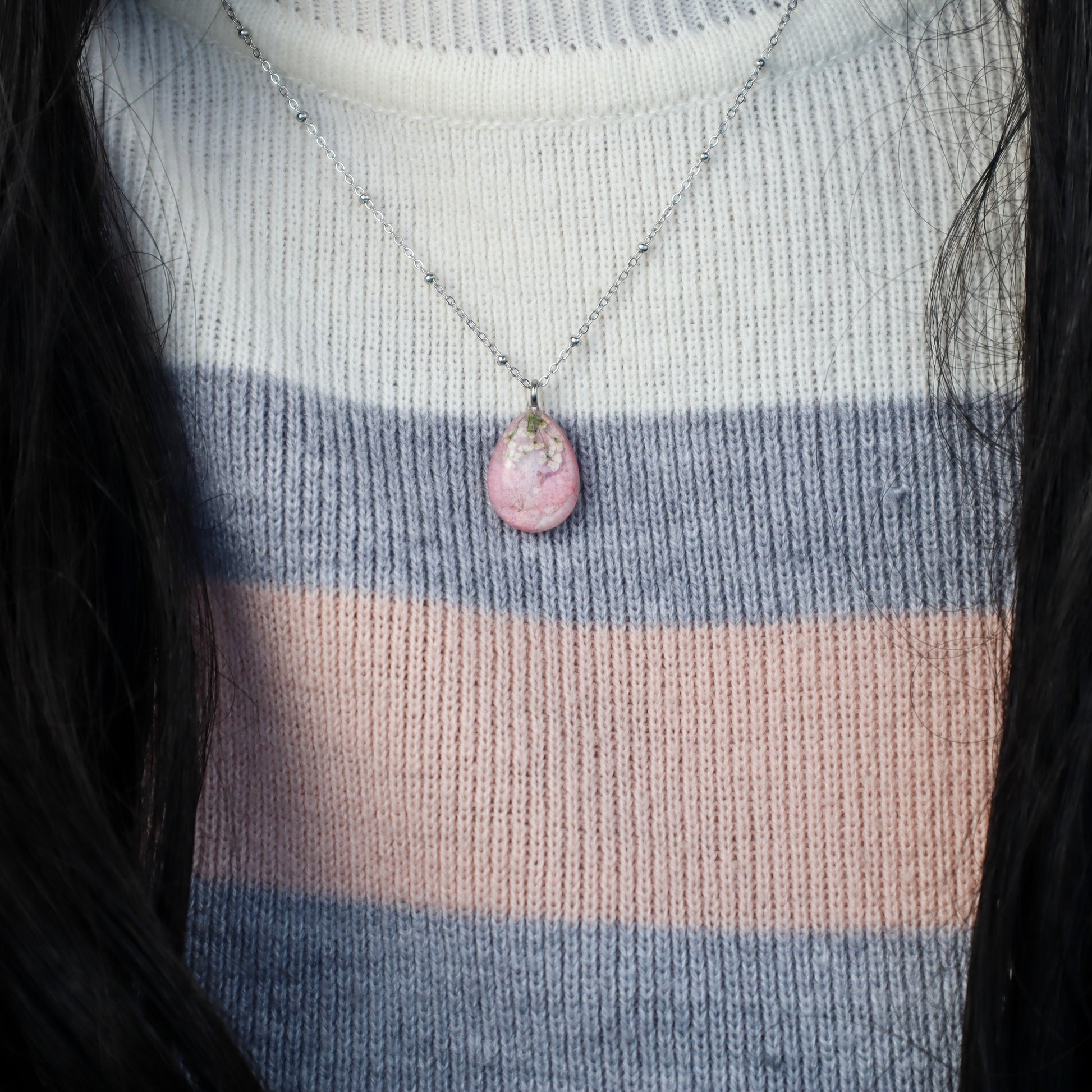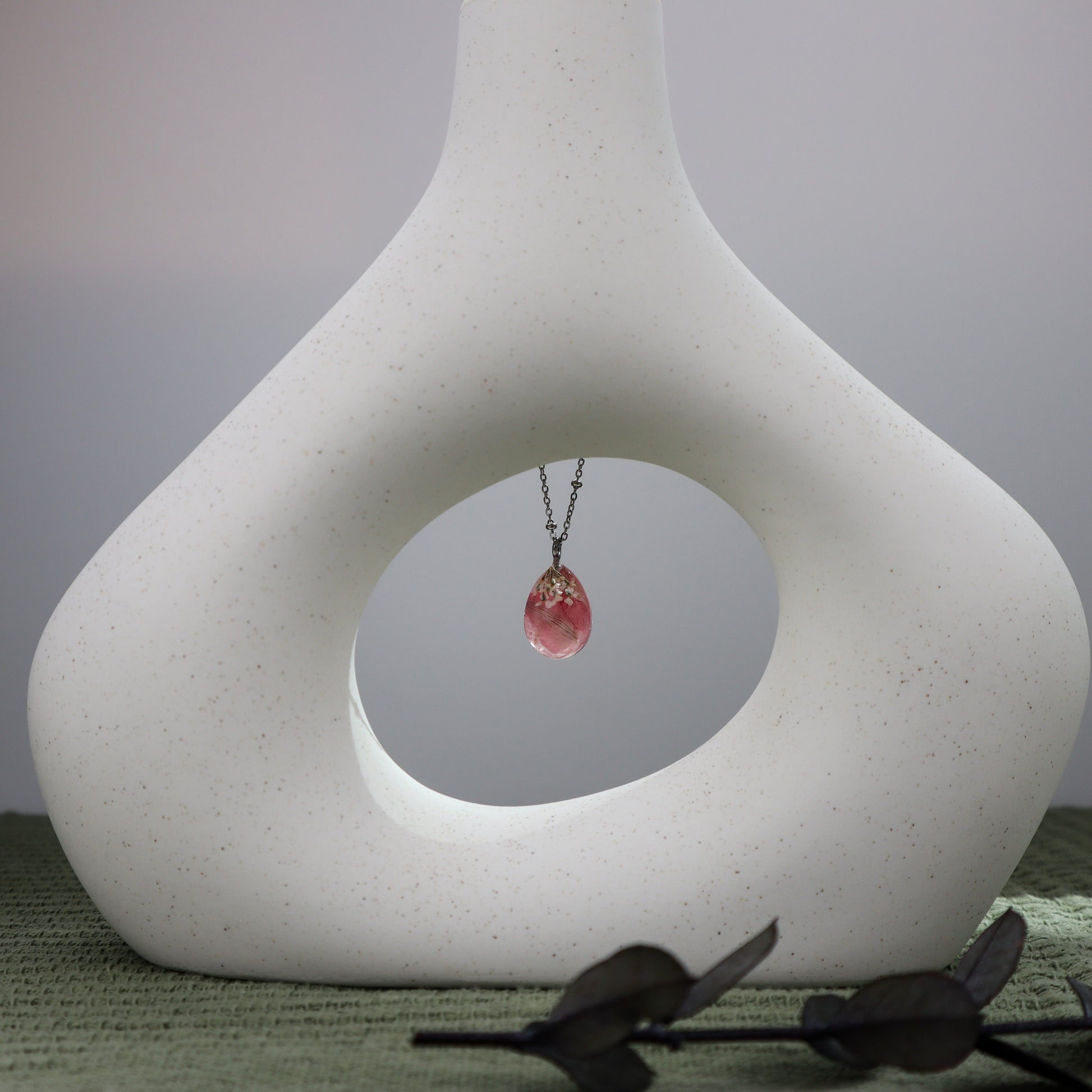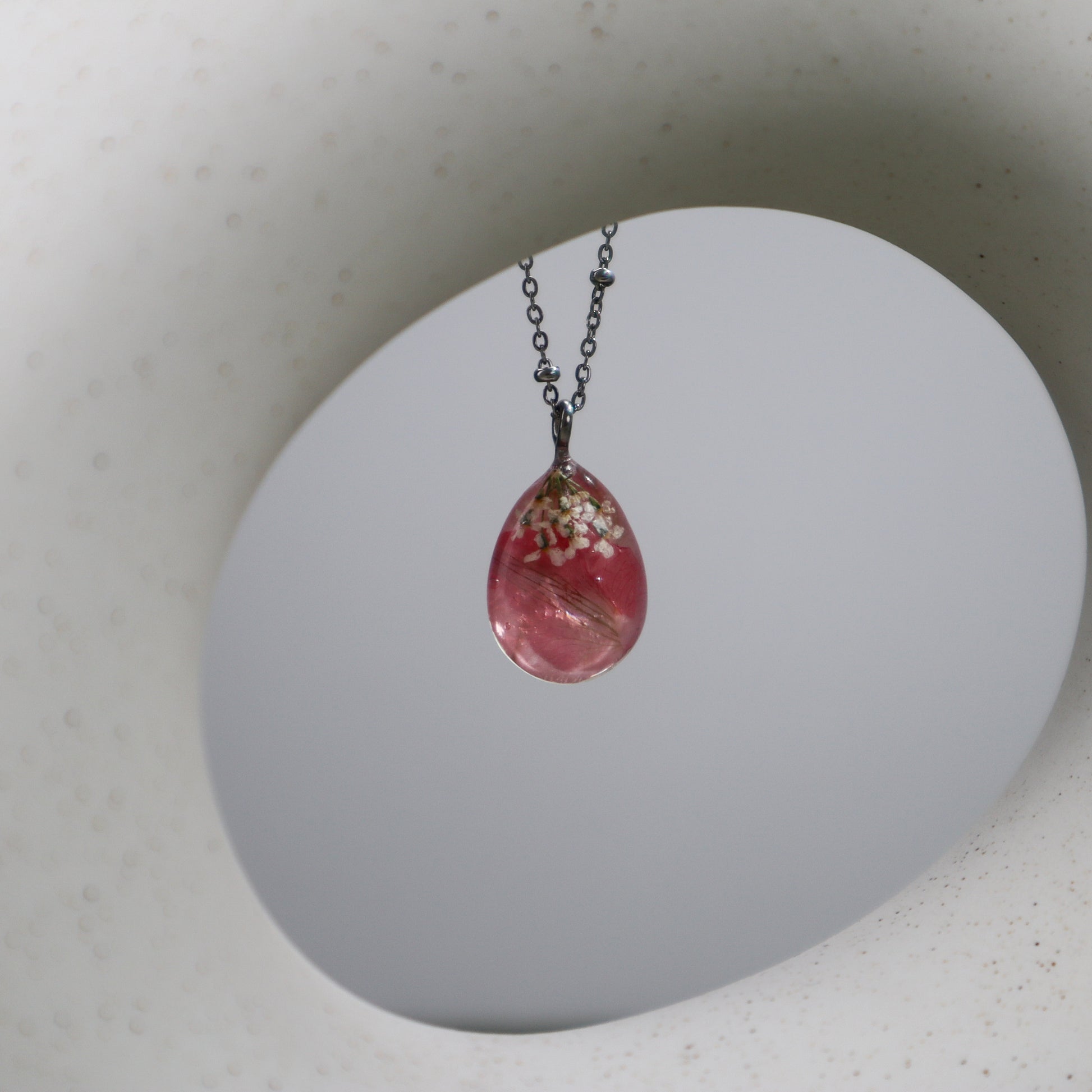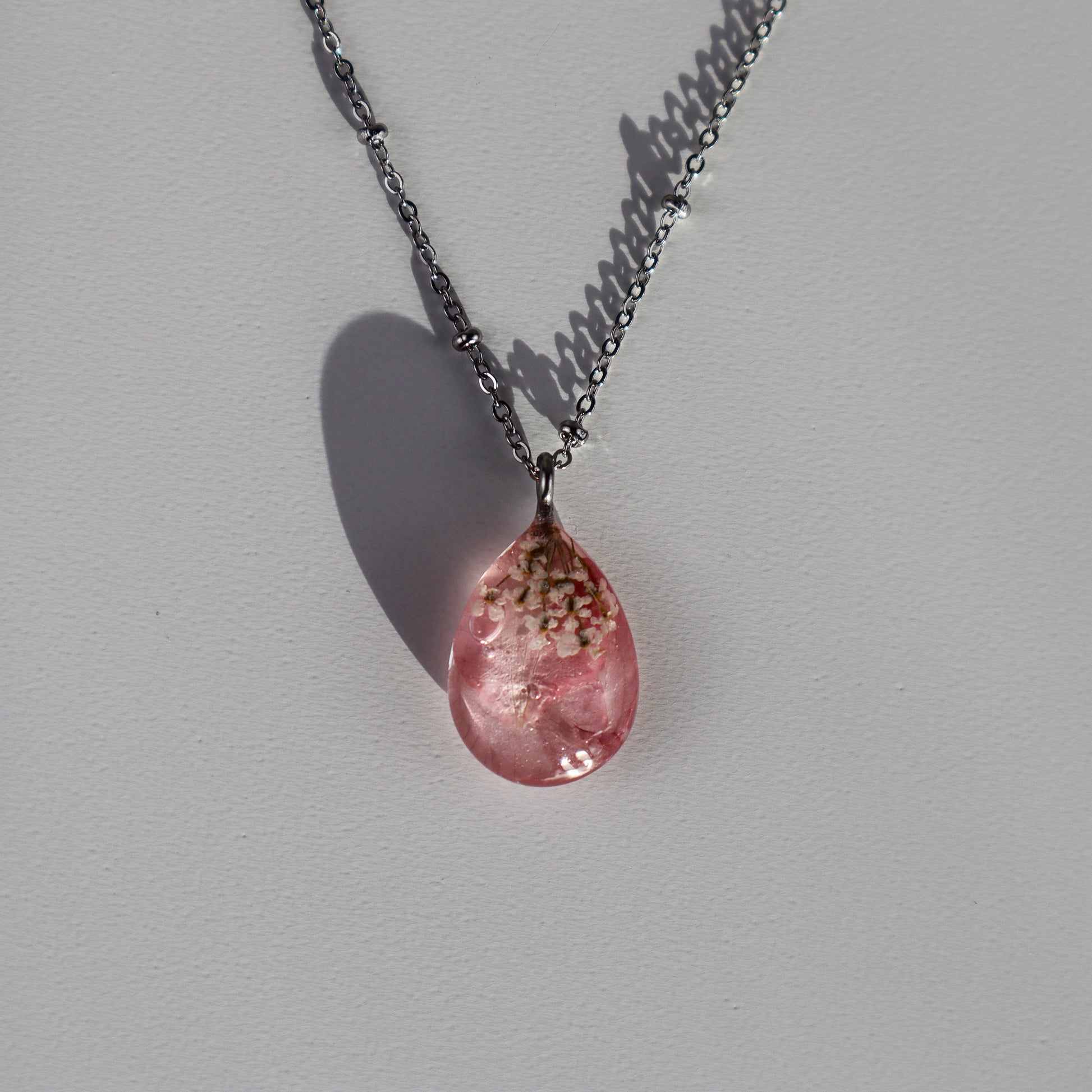 Each pendant is infused with colors inspired by real flowers in nature, adorned with delicate Lace Flowers (Queen Anne’s Lace) that bring a timeless elegance.