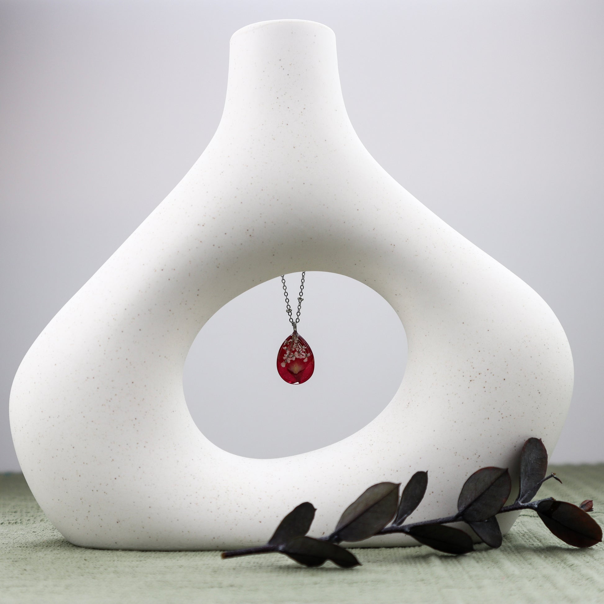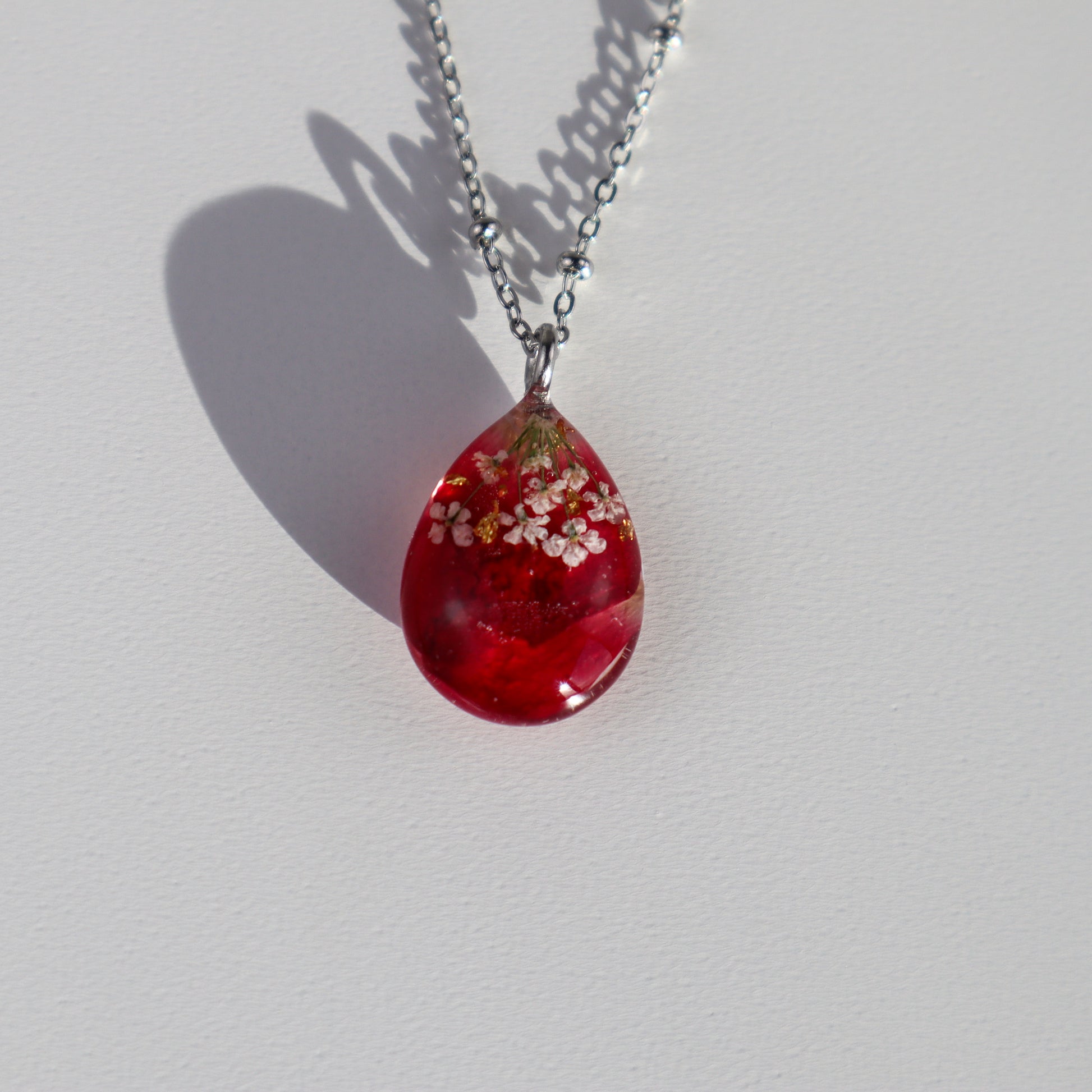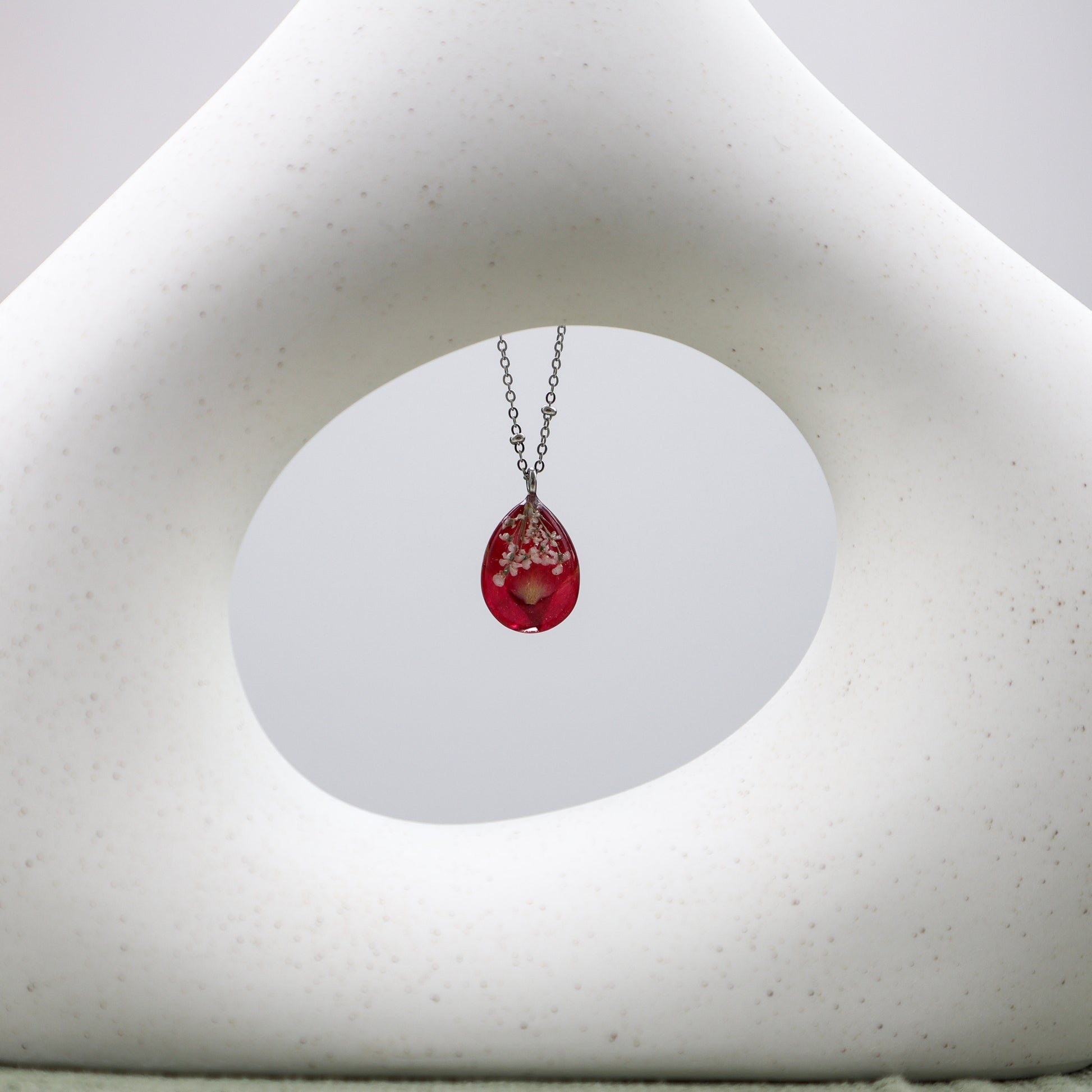 Each pendant is infused with colors inspired by real flowers in nature, adorned with delicate Lace Flowers (Queen Anne’s Lace) that bring a timeless elegance.