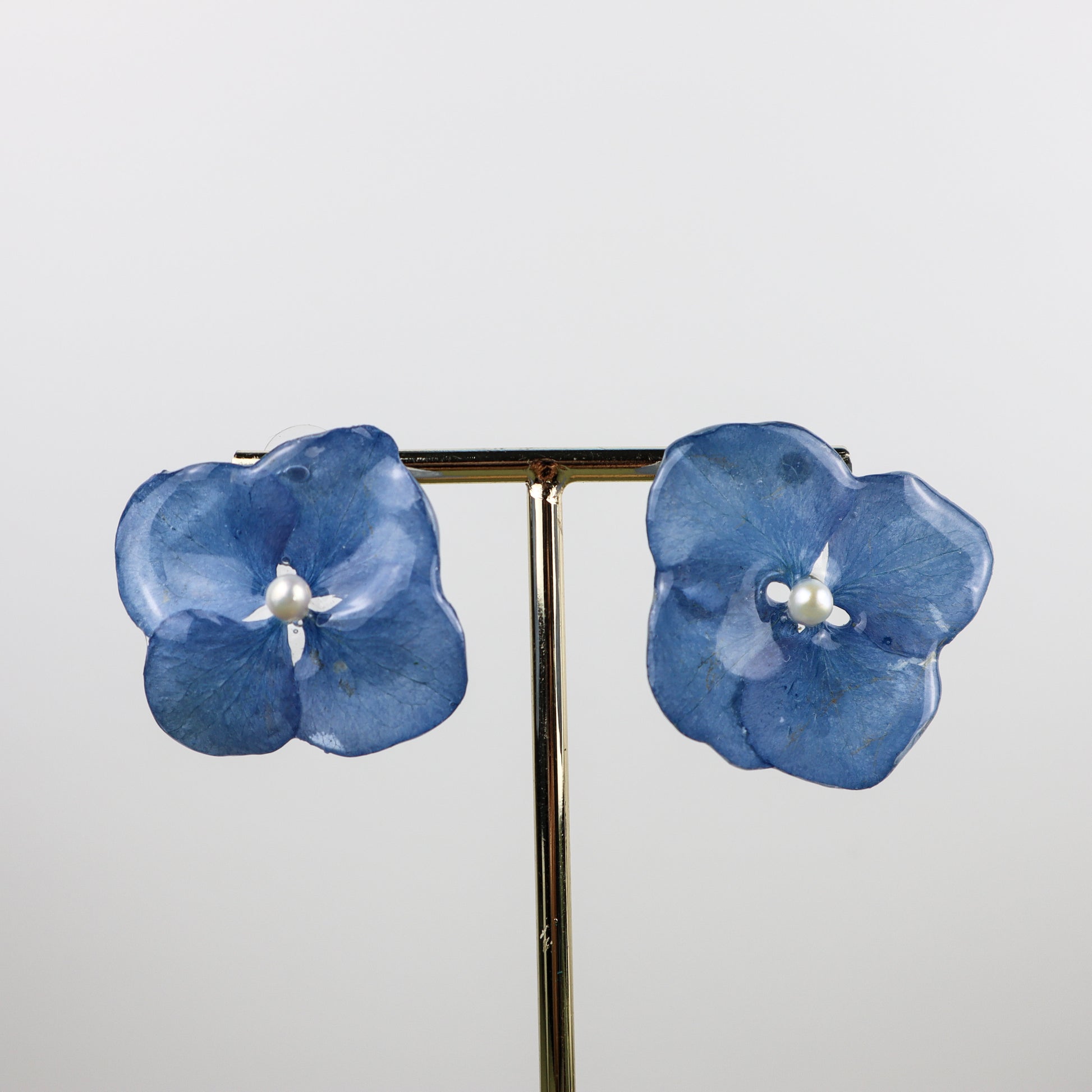 Delicate hydrangea petals I dried myself, transformed into timeless jewelry. With freshwater pearl centers and elegant variations in size and color, each piece blooms uniquely for you