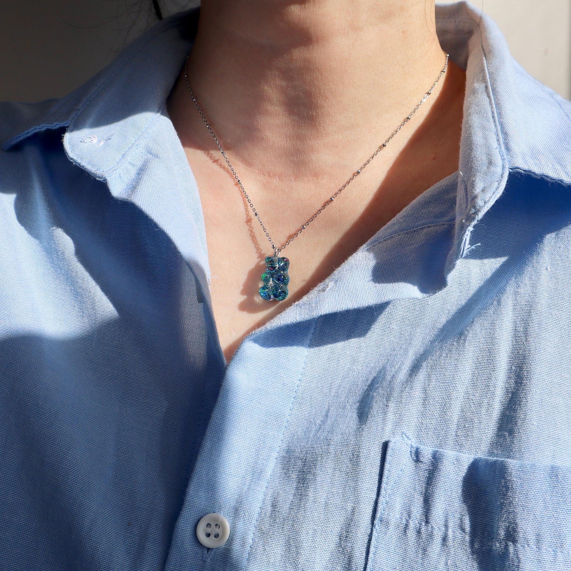 - Material: Resin with surgical steel chain (hypoallergenic, tarnish-resistant)